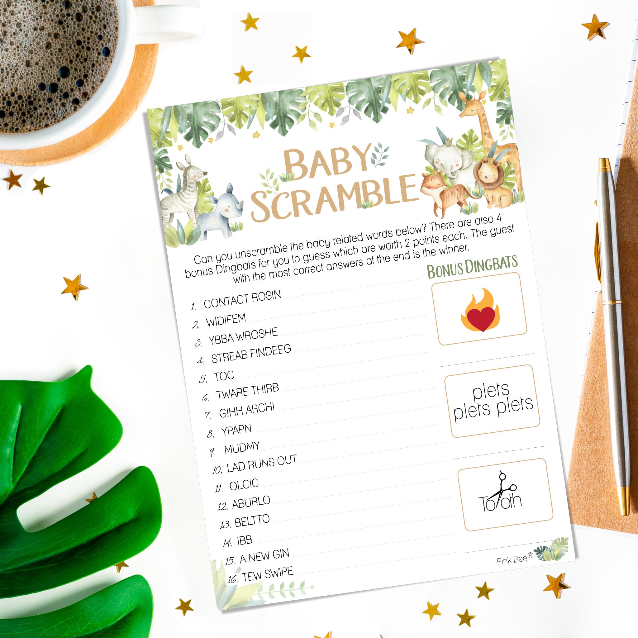 Baby Shower Game Scramble In Baby Safari Theme 10 20 Players Etsy