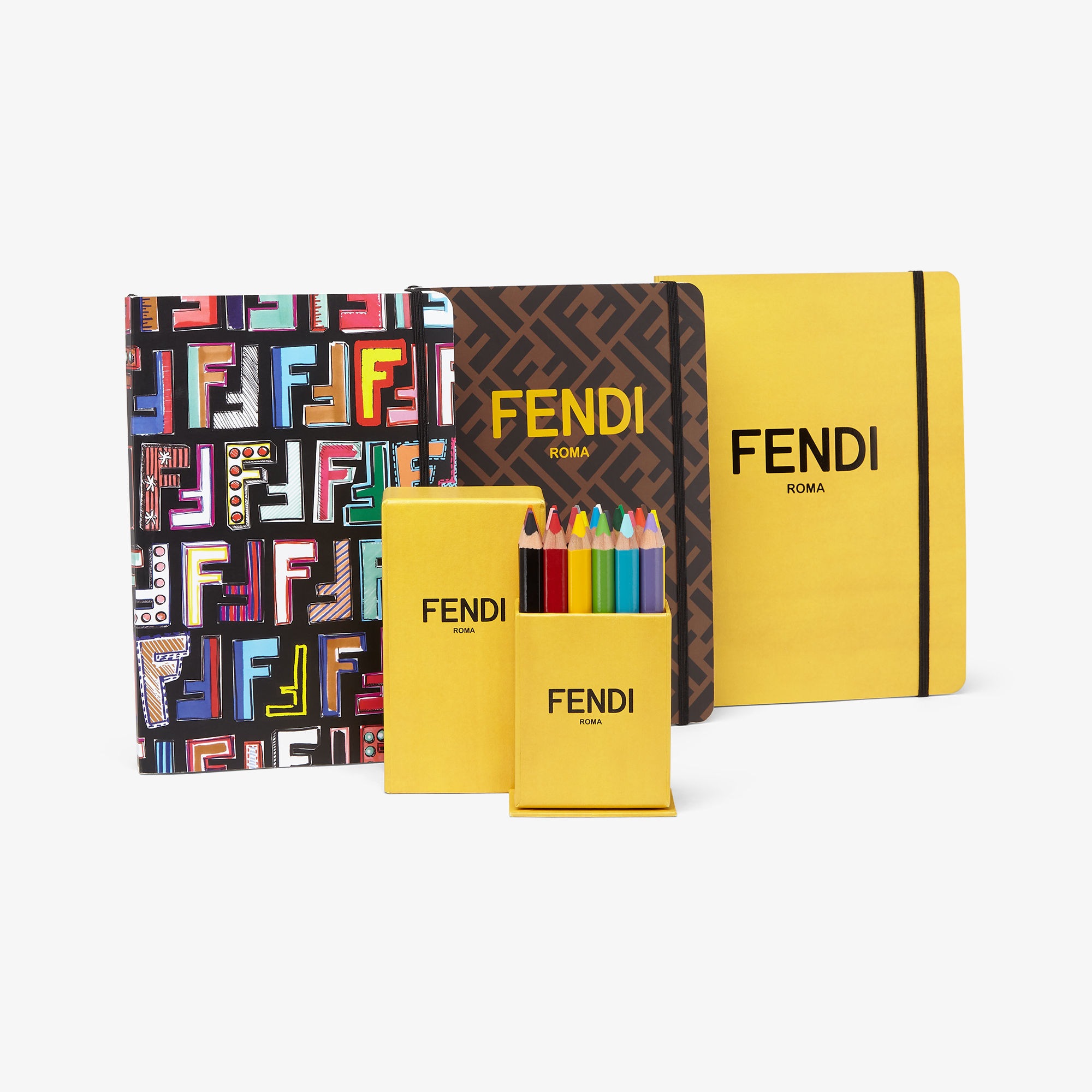 Set Of Notebooks And Pencils Back To School Set With Multicolour Notebooks Coloured Pencils Fendi